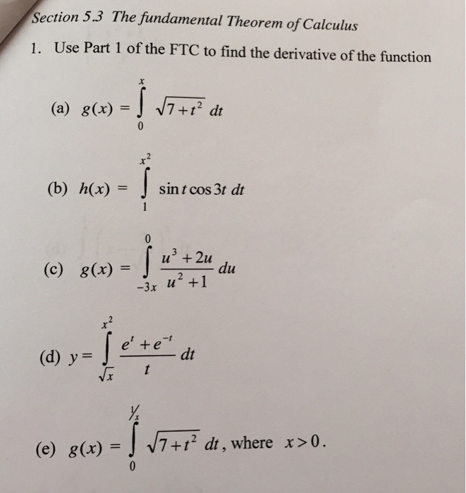 The Fundamental Theorem Of Calculus 1 Use Part 1 Of Chegg Com from d2vlcm61l7u1fs.cloudfront.net Maybe you would like to learn more about one of these? Check spelling or type a new query. We did not find results for: